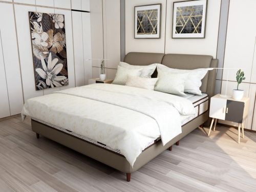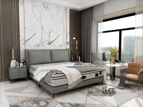 东宝床垫这款皮床走的是轻奢风格的设计,双飞翼床屏、分段式靠包、质感真皮面料,还有金属高床脚,细节处无不透露着对高品质的追求。