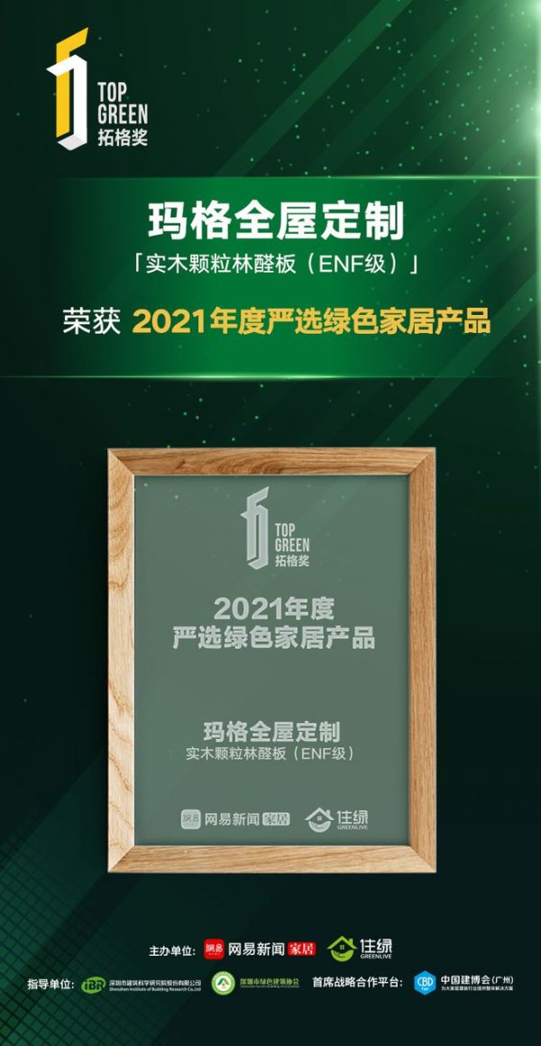拓格奖 | 玛格全屋定制荣获“2021年度绿色环保先锋品牌”
