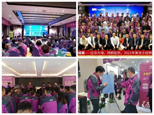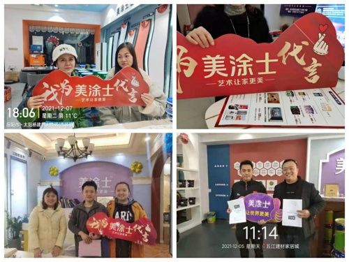 自零售新战略提出以来,美涂士一直坚持做优秀的一体化涂装解决方案提供者。由卖产品向卖效果再向卖涂装解决方案推进,做健康优质涂装产品的提供者,涂装效果搭配方案的提供者,涂装问题防范和解决方案的提供者和一站式涂装服务的提供者。在这一年里,美涂士孔雀开屏百城展在杭州站、吴忠站、遵义站、万州站等全国地方盛大启动,携手全国经销商合作伙伴,沉淀技术,研发具有强大竞争力的产品,创造经营优势,共同筑梦涂料行业的新辉煌。