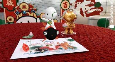 小欧骑着锦鲤冲出水面,寓意鱼跃龙门吉祥如意。当您点击屏幕时,小欧还会给出不同的反馈,时而扭扭身子,时而翻个跟头,寓意生龙活虎神采奕奕。
