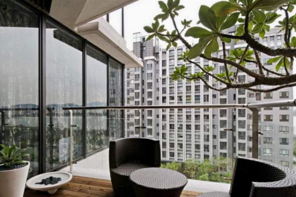 无论是开放式,还是封闭式还是其它形式的阳台,氛围感很重要,可以在阳台放上一个小型沙发、一张小型落地桌,可以再摆上盆栽、花花草草、氛围灯,并预留出投影仪成像投放的位置。