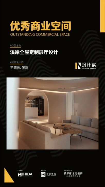 其中,『溪岸太原展厅设计』,以其回归生活的质朴细节、对在地文化的心领神会、对商业空间清晰而精准的解读,从全国众多优秀空间设计中脱颖而出,荣获IN设计奖优秀商业空间奖。