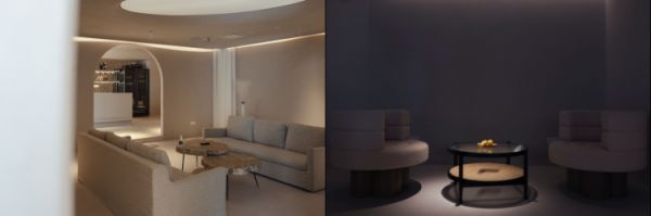 微水泥墙面,对光线的自然模拟,搭配暖色木纹哑光材质,亚麻色系以及更多自然元素的融入,大量拱门与弧形元素的谐趣搭配,为整个空间拟定平和的基调。
