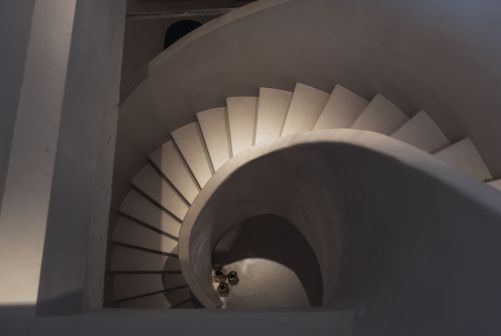 楼梯作为衔接两个空间重要的桥梁,我们希望赋予其功能性之外更多的装饰性。遵循斐波那契数列的螺旋楼梯,以其极致简约的线条,在粗旷肌理与精致形色之间达至平衡,彰显活力与质感。