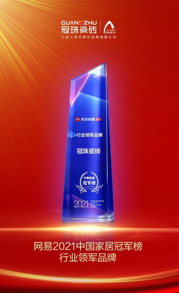 冠珠瓷砖荣获“网易2021中国家居冠军榜行业领军品牌”奖项