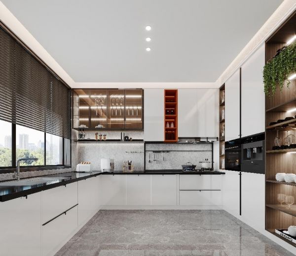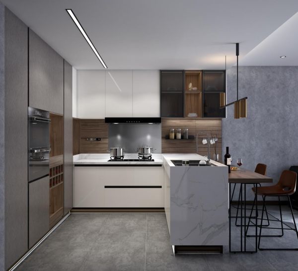 U型:一般呈正方形,操作动线短,也能形成厨房工作三角区,整体性强,方便省力;