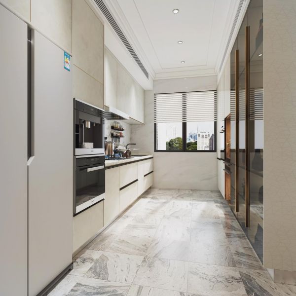 ·备餐区:厨房中除了水槽和炉灶,其他台面空间都可以当作是备餐区,但一般重点的备餐区就是操作台,所以可以在其操作台的正上方安装灯具,避免遮挡产生视觉盲区。