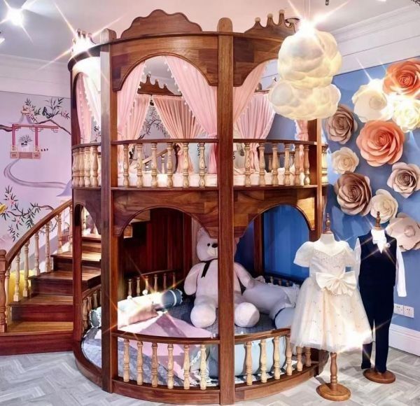 黑檀木全实木制作,耐划、耐酸碱、耐高温,防刮、防潮、防水。0油漆,无气味,甲醛含量远远低于国家标准。窗帘可换色,随心打造梦幻主题房。