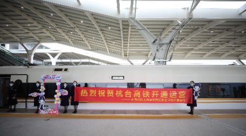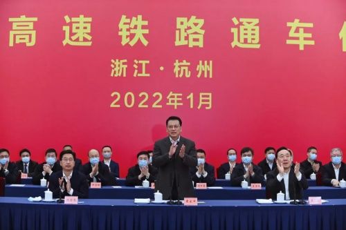 1月8日上午,浙江省委书记、省人大常委会主任袁家军在省主会场出席仪式并宣布杭台高速铁路开通。