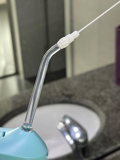 家中卫生间特别是洗漱台空间有限,常见台式冲牙器外形笨重,机身加上外置大水箱、喷嘴等配件收纳起来十分占地,外出携带也不方便,让人颇感无奈。