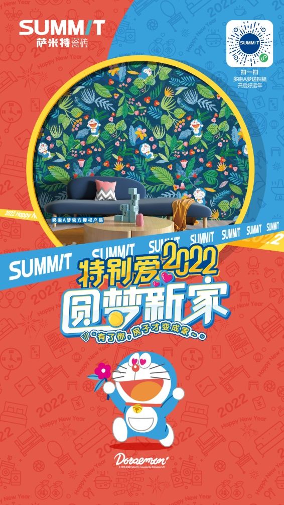 「萨米特瓷砖」在2021年便率先打破传统建陶行业“次元壁”,与哆啦A梦联合打造「萌动花园」系列新品,以新潮、时尚、前沿、年轻化的跨界创举,刷新着大众消费市场对瓷砖产品的刻板印象。而这种新颖的运营方式,也将持续展开、让每一个小时候对家与生活拥有着憧憬的人,都能实现梦想的家!