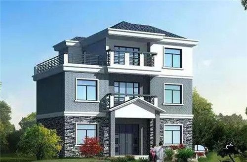 这款房屋造型美观,造价低,可以说是凭实力获得大家的芳心,配色温暖喜庆,充满了家的温馨。外观时尚简约,白色真石漆+灰色面砖和灰色屋顶,大气稳重。多窗设计,可以增加室内的采光和通风,让业主居住起来更加的舒适。