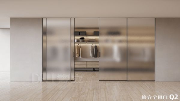 德立全景门,以雅黑色极窄边框+磨砂玻璃的高颜值搭配,可以很好地装点衣帽间,给人带来清凉感和通透感,集实用性和高颜值为一体,方便了日常的收纳与展示,可以最大化地节省空间。