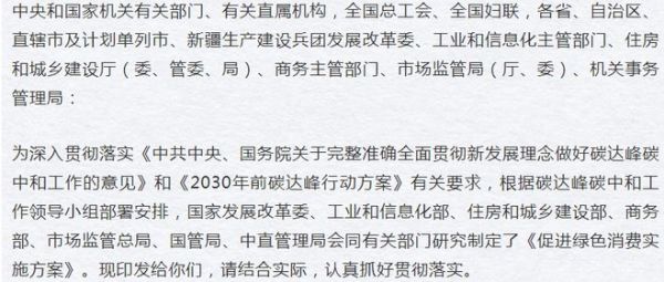 《促进绿色消费实施方案》中提出了衣、食、住、行、游等八大重点领域的绿色消费
