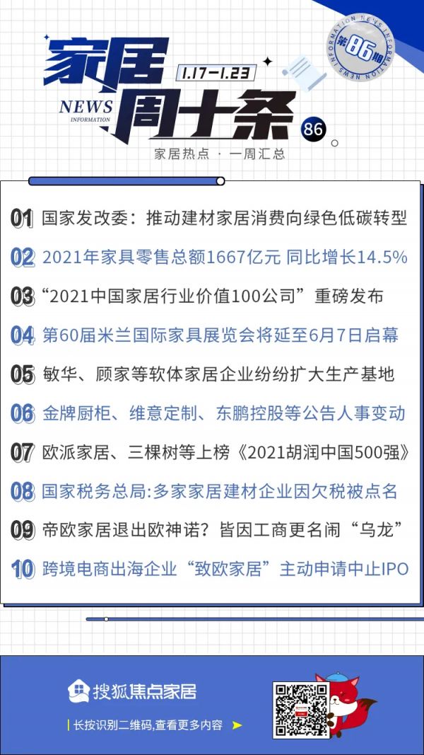 周十条丨2021家具零售1667亿、致欧家居主动中止IPO…