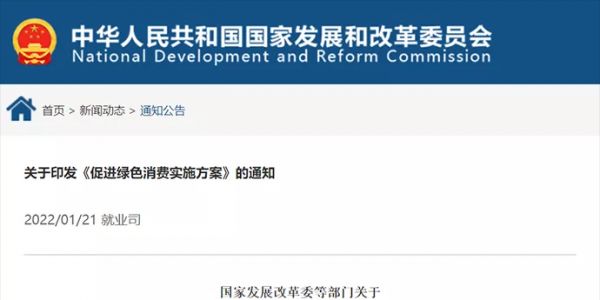 发改委发布《促进绿色消费实施方案》