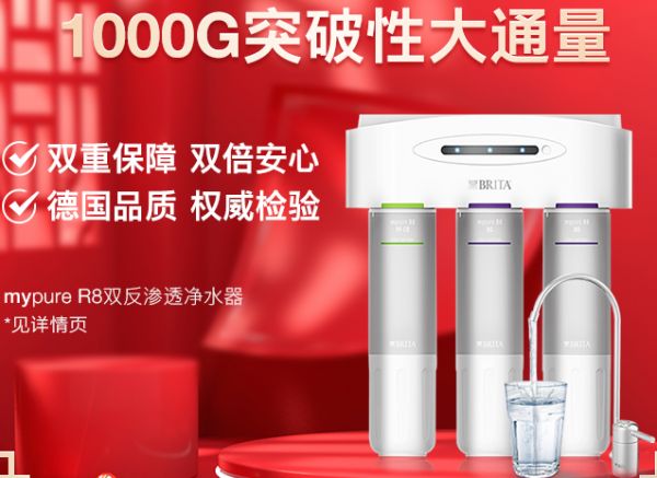以高品质的碧然德mypure R8橱下净水器为例,作为碧然德家极具号召力的一款净水器,其采用的也是当下非常火爆的陶氏进口双RO膜,双反渗透技术,并且配备四级滤芯。