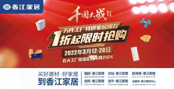香江家居龙岗华南城商场谋定而后动,聚焦大湾区建材家居集采中心,通过战略升级、产业布局、营销服务创新和运营管理升级等四大举措,全面助力建材家居品牌从商危中寻转机、在变局中开新局,抢跑2022。