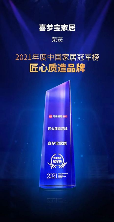 在本次的颁奖盛会中,喜梦宝荣获双奖——喜梦宝家居品牌荣获冠军榜匠心制造品牌奖,喜梦宝家居集团副总裁金铭荣获冠军榜年度领军人物奖。