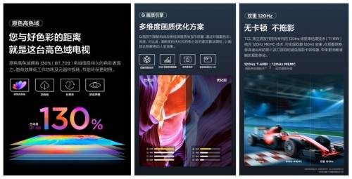 除了对听觉的高标准外,这款S12金标剧院电视毫不放松对视觉的追求。TCL电视采用高品质面板和背光,让高色域覆盖达到130%,配合Q画质引擎让信源画质的显示质量得到有效改善。为了适应次时代游戏主机和未来视频规格发展,TCL S12金标剧院电视配置双重120Hz,其中120Hz刷新率倍增技术(T·HRR)是由TCL独立研发并持有专利,配合120Hz MEMC动态补偿技术(部分功能系统升级后就能体验),无论在观看足球、赛车等比赛还是在打游戏时,都可以极大改善拖影、卡顿现象,给用户带来更流畅清晰的使用体验。