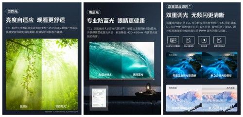 TCL电视对消费者视力也做到了无微不至地关怀,S12金标剧院电视支持全生态HDR,可完美欣赏HDR视频,让视频中的亮部更亮、暗部更暗,并尽可能地保留画面细节。然而过亮或过暗的屏幕都可能损害视力,TCL三管齐下:一是使用专利自然光技术自动调节屏幕亮度,始终保持画面亮度舒适健康;二是通过背光和算法两方面结合控制蓝光,有效降低420-450nm波段蓝光的视觉伤害,已通过莱茵防蓝光专业认证;三是采用独立研发的双重混合调光技术,让电视同时具备DC和PWM两种调光方式,取长补短,有效弥补DC调光低亮度画面色彩失真和PWM调光频闪问题。