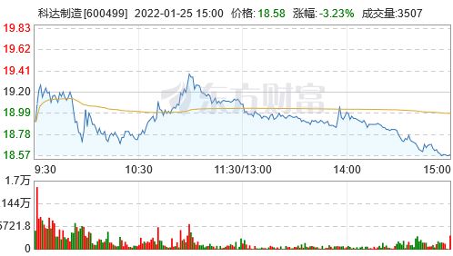 2022年1月25日,国金证券股份有限公司对科达制造(600499)进行研究并发布了研究报告《业绩符合预期,蓝科收益增厚》,该报告对科达制造给出买入评级,当前股价为18.58元。