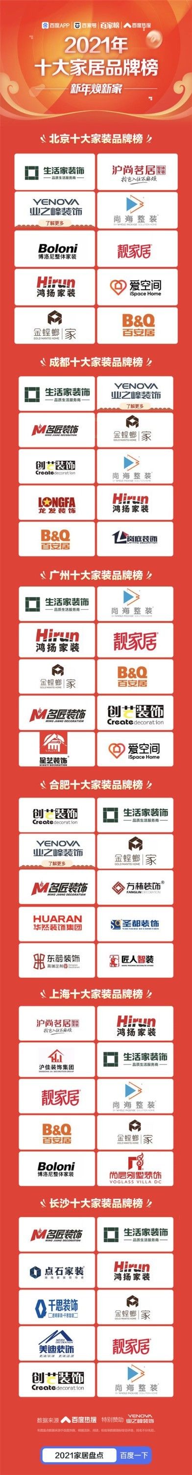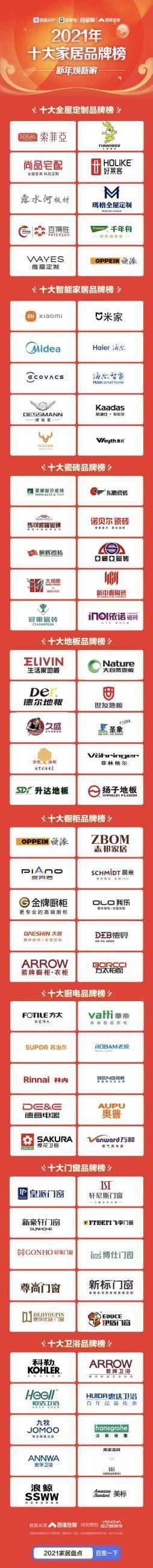 从品类、城市等维度分别评选百度平台全年热搜指数和内容讨论热度最高的十大品牌。他们是21年值得信赖的家居品牌。