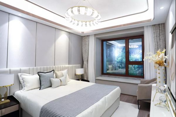 改善型住房的主卧室,要满足“独立卫浴+衣帽间”的双重需求,保障生活的舒适和私密性。在此基础上,礼苑创新设计南向双主卧套房,两代人互不打扰,大大提升了家庭生活的品质感。同时都配有宽景大飘窗,让阳光唤醒每一个清晨,有条不紊的更衣洗漱,迎接美好的一天。
