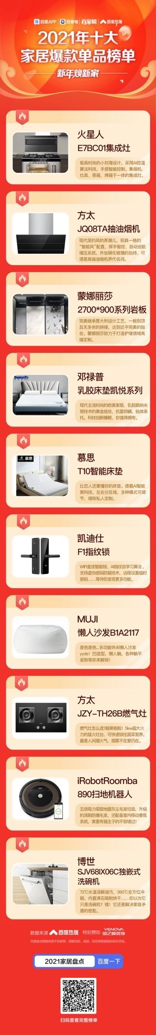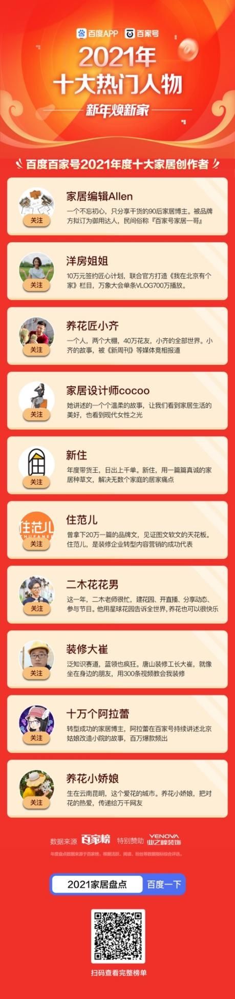 【中国家居年度影响力盘点】项目1月20号在百度APP正式上线。项目由百家号百家榜、百度热搜提供专业数据支持。(百度搜索【2021家居盘点】即可看到主会场。)