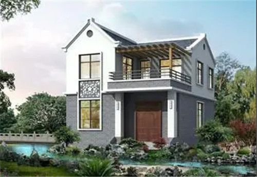 这是一款仿古设计的房屋,外观非常的古朴,和徽派乡村建筑有点类似,但是又不是完全不同,房屋外观素雅大气,没有复杂的装饰,只通过色彩和门窗进行搭配,让房屋充满了特色。