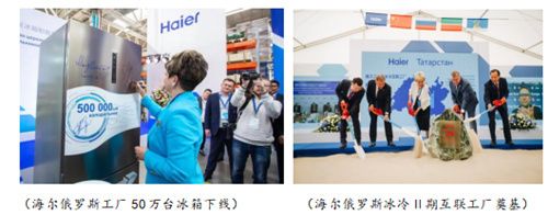 2016年海尔智家在俄罗斯境内鞑靼斯坦共和国车尔尼市投资建设了第一个冰箱智能工厂,并实现了当年投产、当年达产、当年盈利的目标。2018年规划建设了大型智能工业园,2019年又落地一家洗衣机互联工厂。目前,海尔已在俄罗斯建设了冰箱、洗衣机、电视3个工厂,年产能超150万台,产品销售100%覆盖俄罗斯及独联体国家。2021年6月份,海尔智家的二期的工业园区又破土动工。