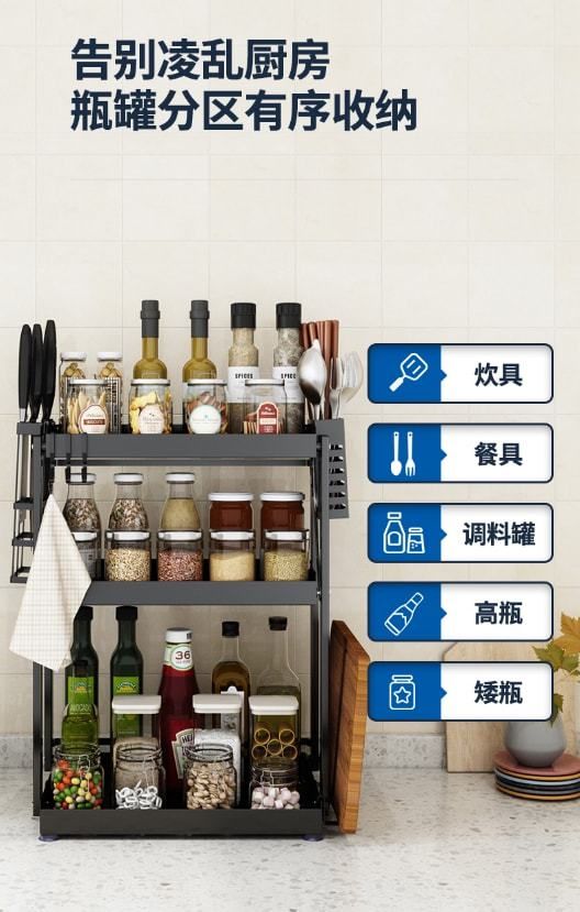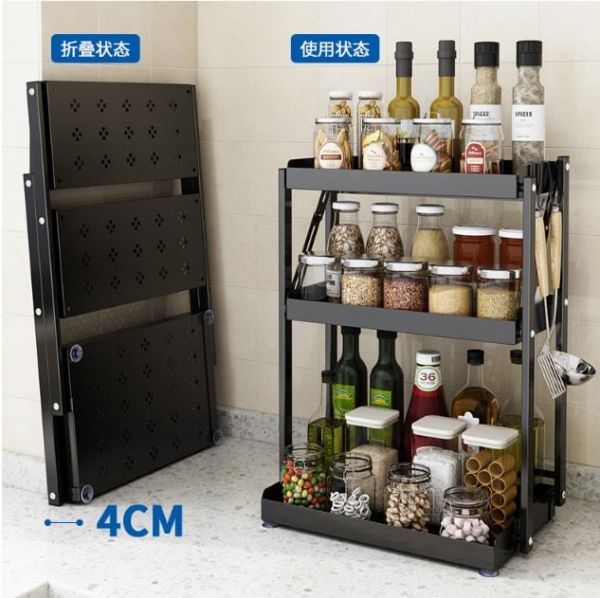伟经调味架是经典的磨砂黑色,免安装设计一秒开合,像我这样瘦弱的女生也能收放自如,不用的时候收纳起来也仅有4CM的厚度。它分为2层和3层的规格,由雅黑烤漆层、耐酸耐腐保护层、抗氧化保护层和高强度碳钢层多层工艺匠心打造,其表面不易生锈,易擦洗,不沾油污,清洁起来也更轻松。