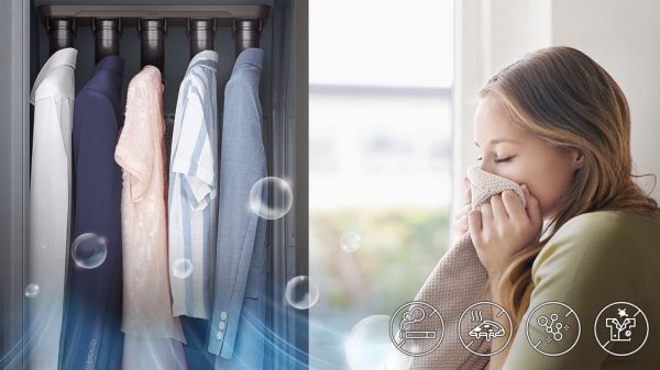 同样的,Samsung BESPOKE系列衣物护理机的香氛盒能在去除异味的基础上让衣服保留淡淡芳香,身着新衣,清香怡人更悦己,让你在聚会人群之中自带清新“光环”。