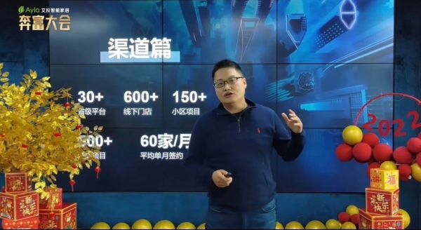 2022年1月25日,Ayla艾拉物联举办了开年首场智能家居2022“奔富大会”,现场达成签约13家,如果能够按照艾拉物联最新的建店政策,在45天内完成建店,意味着到3月份,艾拉物联的门店数量已经逼近1000大关,与具有10年历史的老牌智能家居企业渠道数量相差无几。