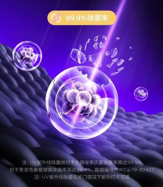 在消费者关注的健康方面,得益于其高密闭性的干衣过程,避免了户外晾晒的过程,因此不容易对洗干净的衣物造成二次污染。另外在干衣过程中,美的干衣机也内置了UV紫外线灯,模拟正常的日照晾晒,360°紫外线照射除菌,深入衣物纤维杀灭细菌,能够做到99.9%杀菌率和91.45除螨率,免除螨虫和雾霾的困扰,带给家人阳光般的健康穿衣体验。