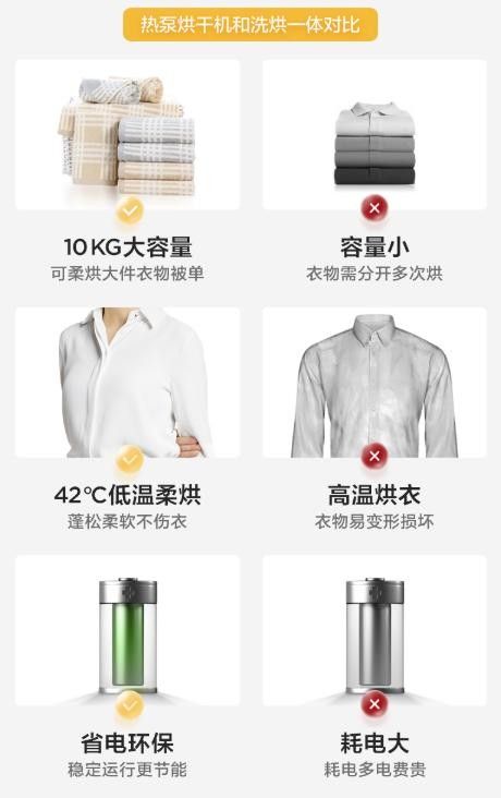 而评价一款烘干机的优劣还是在于其最终的干衣效果,美的干衣机在这一项上牢牢掌握着核心技术。它所采用的热泵低温柔烘技术搭载了第二代热泵循环系统,能够像空调一样在烘干机内维持42摄氏度低温柔烘衣物,做到真正不伤衣物,而升级后的大排量压缩机能持久快速送风,快速烘干的同时让衣物更加亲肤。这项技术不同于市面上其他干衣采用的冷凝烘干,通过热量的最大程度循环使用,大幅提升了使用效率,较冷凝技术能耗减低明显,更显经济环保。