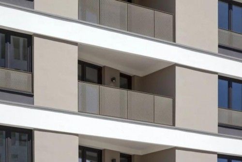 1)采用节能隔热复合系统。德爱威ETICS 系统 Pro Extra占据了最大部分。而在窗户之间和栏杆区域下方,考虑到面漆的低亮度,应用了转为浓色和深色而开发的 Carbon Extra 系统。