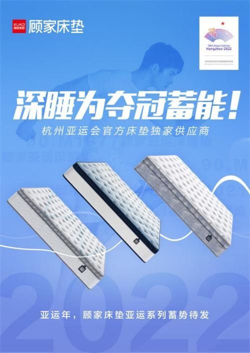 顾家家居创立于1982年,坚持创新驱动发展,深耕家居行业,成为了中国家居制造业领军者。顾家床垫作为顾家家居旗下床垫品牌,一直专注于睡眠科学的研究和运用,以“深睡”为核心理念,构建科学的深睡研发体系、产品体系和服务体系。在深睡领域沉淀了多项专利技术,通过打造具有吸湿排汗透气特性的顾家亚运系列床垫,帮助运动员更好的进入深睡状态,备战亚运,深睡为夺冠蓄能。