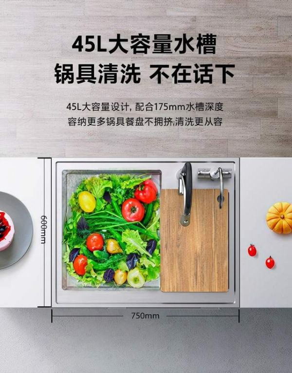 美的集成水槽净洗机TX75拥有45L大容量水槽,并配备了175mm水槽深度,锅碗瓢勺、筷碟炒锅,随心清洗一步到位,过节烹饪年夜饭也不再话下。贴心的多功能备料台设计,水槽沥水、解冻食材、放置物品、水壶接水,复式组合空间利用更彻底,不需要预留多余的空间置物架,实现空间的极致利用;搭配软管式双出水龙头,打破传统水槽固定洗漱格局,冲走琐碎烦恼,高效便捷超实用。