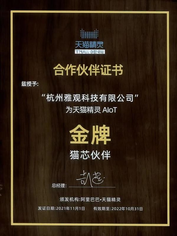 新浪家居智能家居频道讯 近日,雅观与天猫精灵合作升级,成为天猫精灵“AIoT金牌猫芯伙伴”。这是继2019年雅观获天猫精灵“AIoT星级合作伙伴”授牌之后,双方在AIoT领域的又一次深度合作。