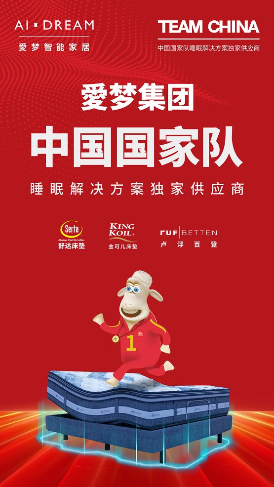 2022年1月24日,愛梦集团携旗下舒达、金可儿、卢浮百登三大品牌,与TEAM CHINA中国国家队成功签约,正式成为TEAM CHINA中国国家队睡眠解决方案独家供应商。