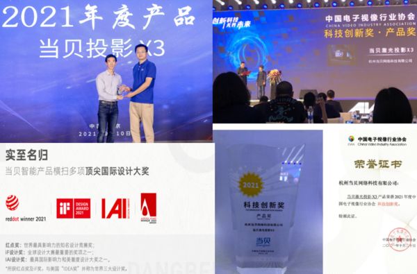 作为2021年度现象级爆款热销投影仪,当贝X3问世以来先后获得了国际大奖iF设计奖、2021云游戏峰会国内2021年度产品奖和第十七届中国音视频产业大会荣获中国电子视像行业协会授予的“科技创新奖”,投影仪行业独此一家!