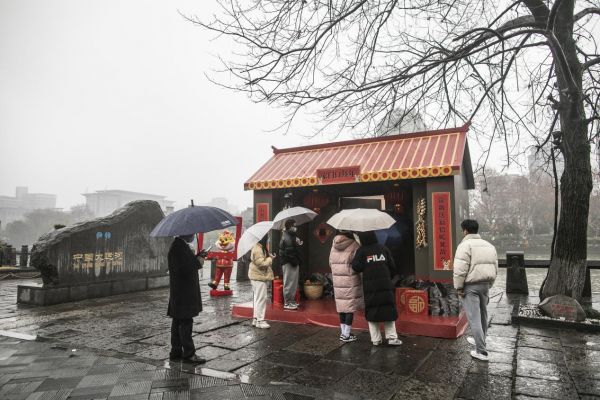 1月26日,在杭州拱墅区拱宸桥西的大运河畔,出现了一个特殊的“门锁亭”,吸引了许多路人驻足观看。这个特殊的门锁亭以中国传统院落门面为设计,以春节红为主色调。来往路过拱宸桥西的异乡游子,在临近春节前看到这个充满传统年俗文化符号的门锁亭,不禁想起自己的家乡。