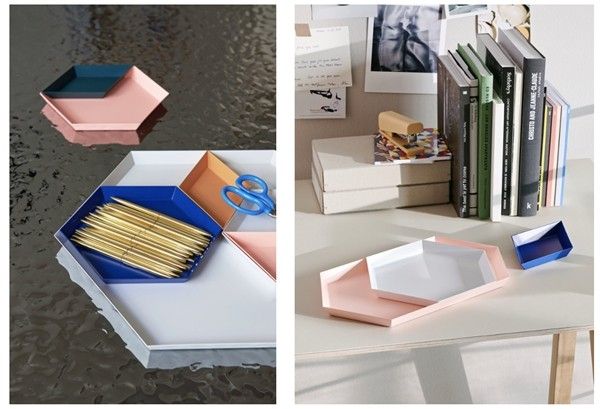 Kaleido 系列托盘由瑞典设计师Clara von Zweigbergk 联合 HAY 推出。由一张简单的菱形纸片经过数次折纸实验,从而呈现出美观性与实用性兼具的收纳托盘。将不同尺寸与配色托盘如拼图般进行搭配放置,即刻创造一个充满想象力的小单元物件收纳情境。