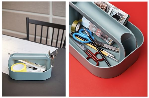 Tool Box 手提收纳盒,由美国设计师 Shane Schneck 设计,它由可降解塑料制成,用料结实的同时且做到质感轻盈。提手设计赋予 Tool Box 方便移动的特点,无论是烹饪用具、办公用具、洗涤用具...... Tool Box 可以做到一物多用的高效率收纳。