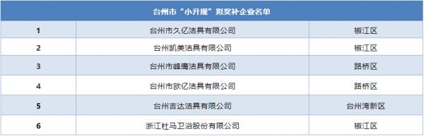 陶卫快讯|台州市财政局联合公示“小升规”企业名单,6家卫浴相关企业上榜。