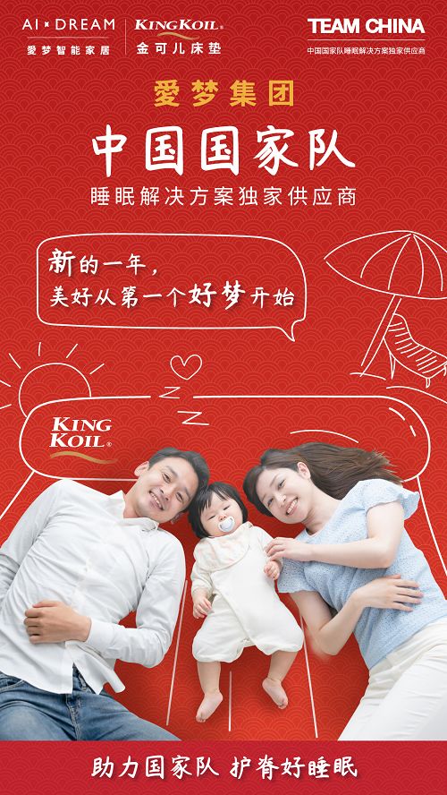 金可儿品牌所属愛梦集团是TEAM CHINA中国国家队睡眠解决方案独家供应商。作为愛梦集团旗下三大品牌之一,金可儿将借助集团强大的供应链管理能力、品牌运作能力,持续深耕中高端床具市场,生产更加有益于人体健康的高品质床垫。金可儿床垫,护脊好睡眠,助力国家队出征!