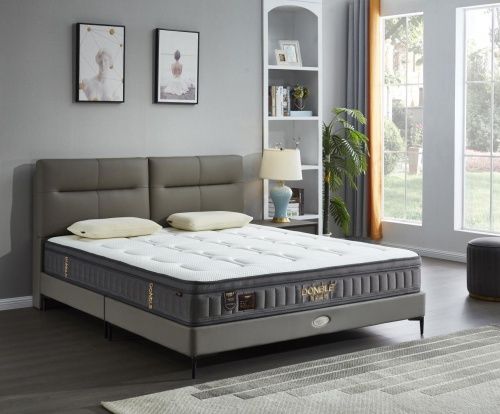 东宝床垫DB-335是一款现代简约风格的皮床,采用齐边设计,更加节省卧室空间,方便上下床和更换床单,十分实用。它的床头靠包采用拉扣设计,造型十分圆润饱满,搭配高级灰显得时尚又优雅。
