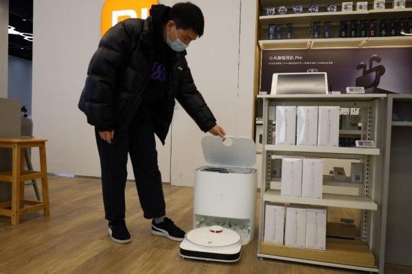 消费者在西安京东MALL体验小米12X手机、Pico Neo 3 VR一体机、米家免洗扫拖机器人Pro等春晚同款好物