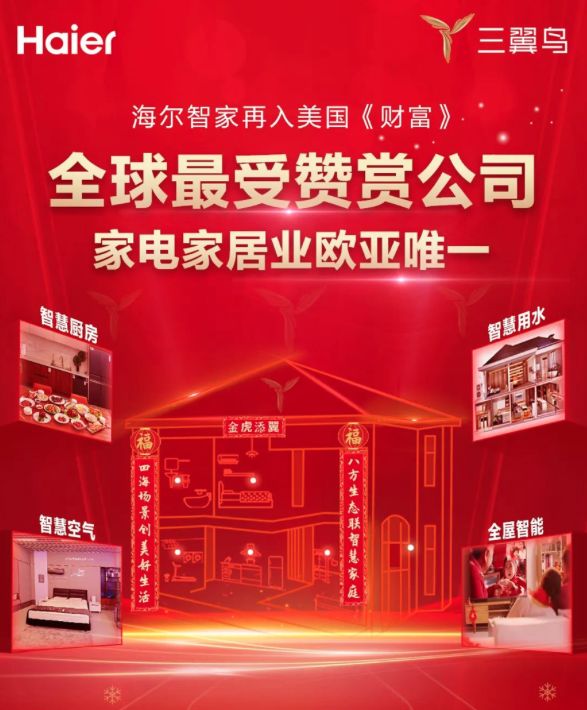 家电快讯| 海尔智家再入美国《财富》全球最受赞赏公司